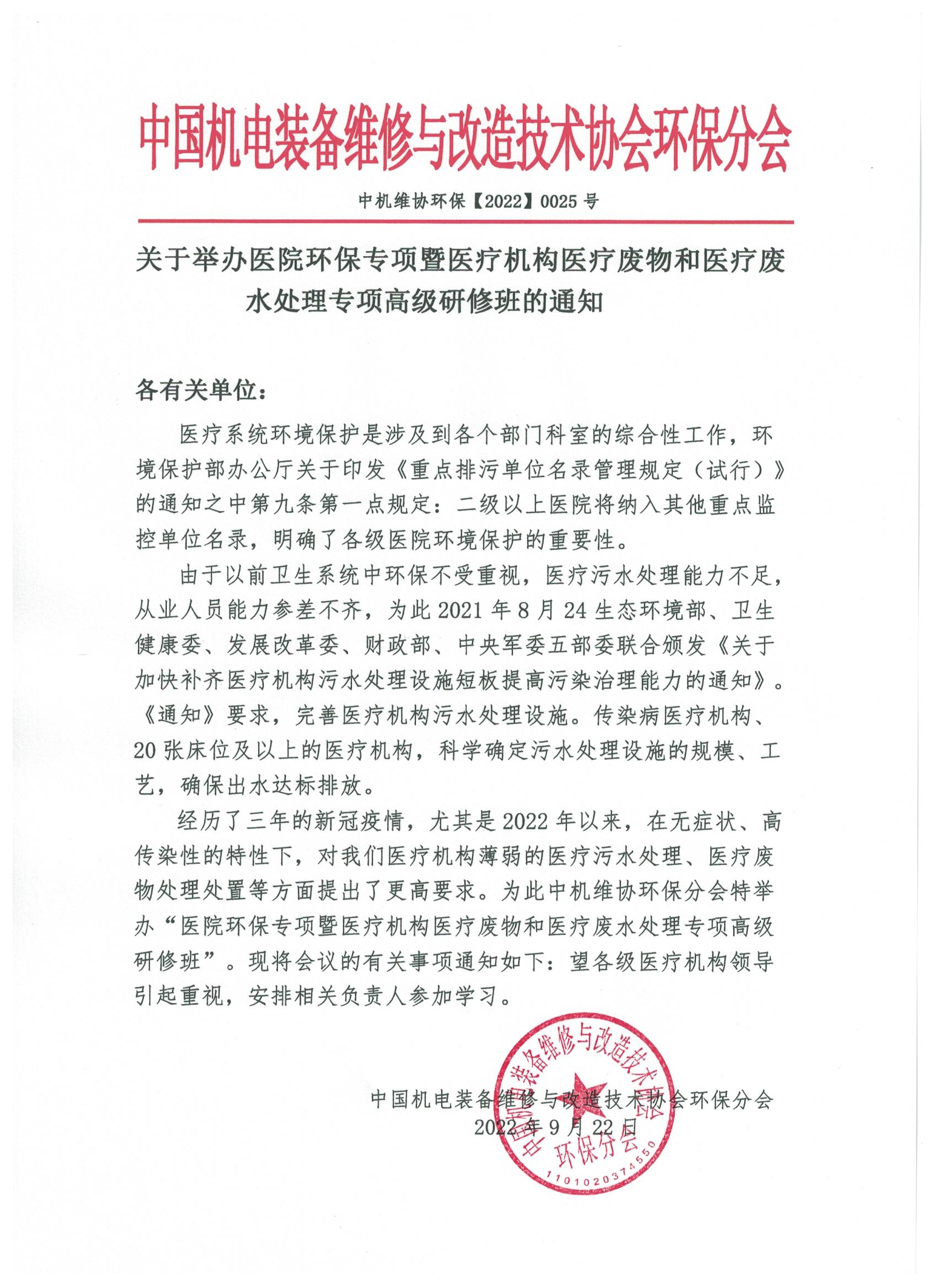關(guān)于舉辦醫(yī)院環(huán)保專項(xiàng)暨醫(yī)療機(jī)構(gòu)醫(yī)療廢物和醫(yī)療廢水處理專項(xiàng)高級(jí)研修班的通知!