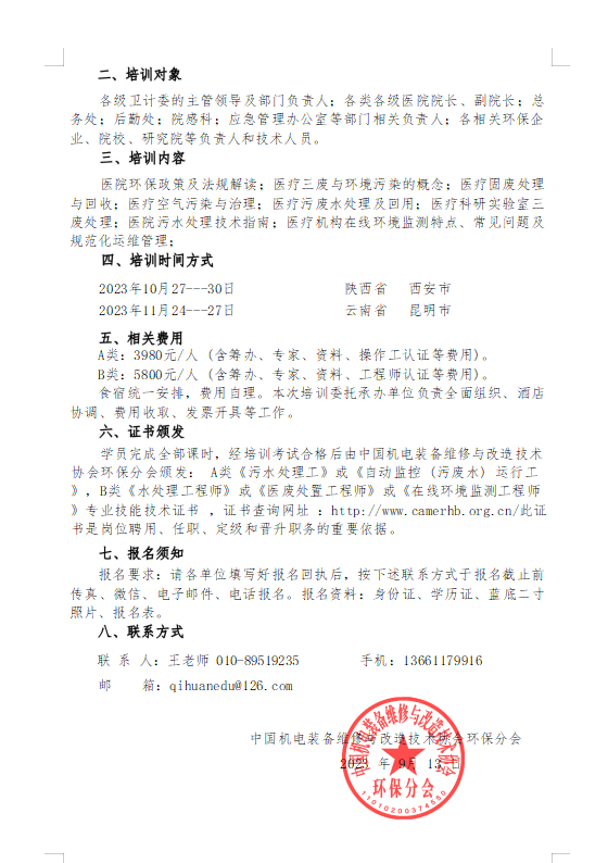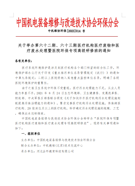 關(guān)于舉辦醫(yī)院環(huán)保專項(xiàng)暨疫情防控常態(tài)化下“醫(yī)療機(jī)構(gòu)醫(yī)療廢物和醫(yī)療廢水處理高級(jí)研修班”的通知!