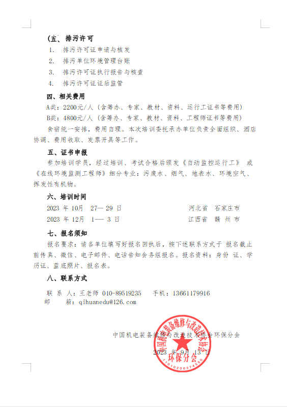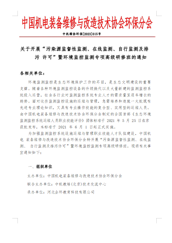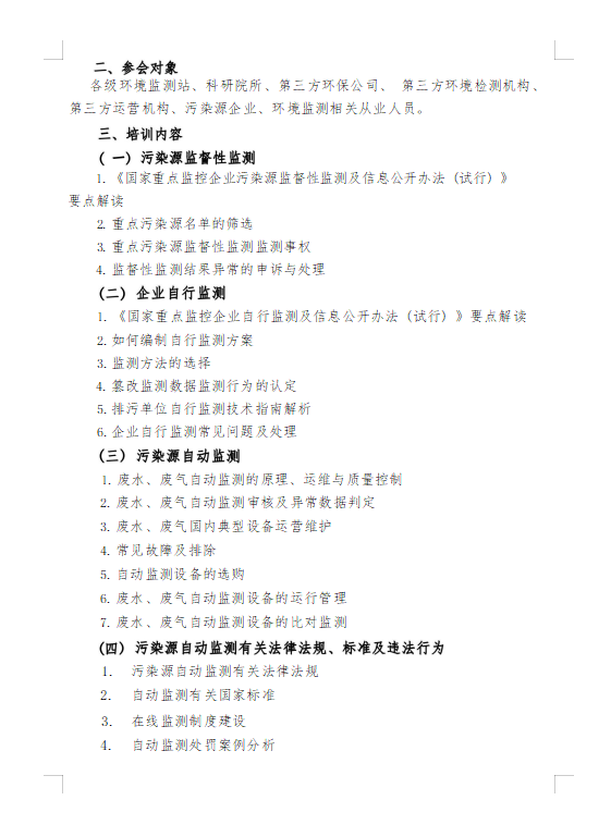 關于開展 污染源監督性監測、在線監測、 自行監測及排污許可暨環境監控監測專項高級研修班