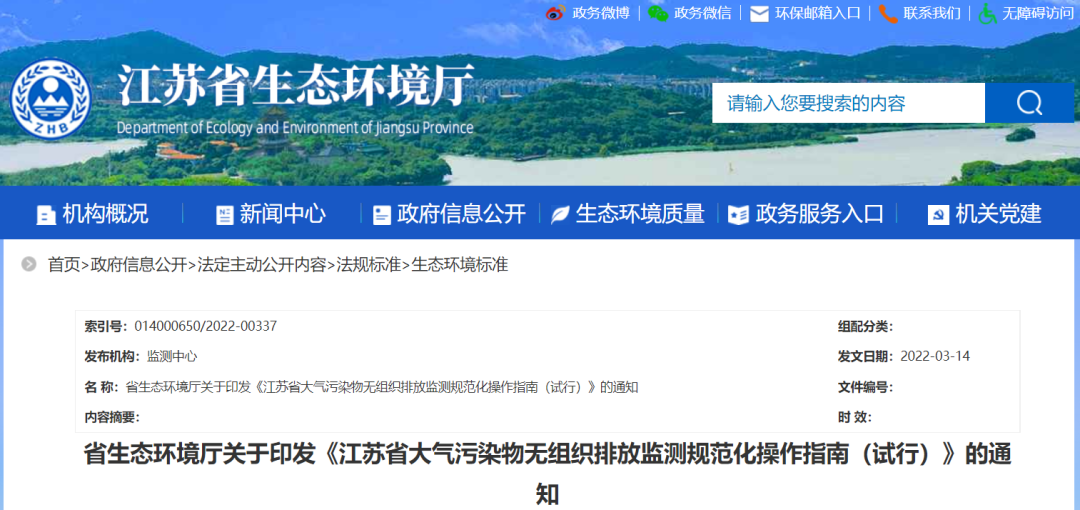 《關于印發江蘇省現場監測工作行為規范(試行)的通知》(蘇環辦〔2019〕290號)