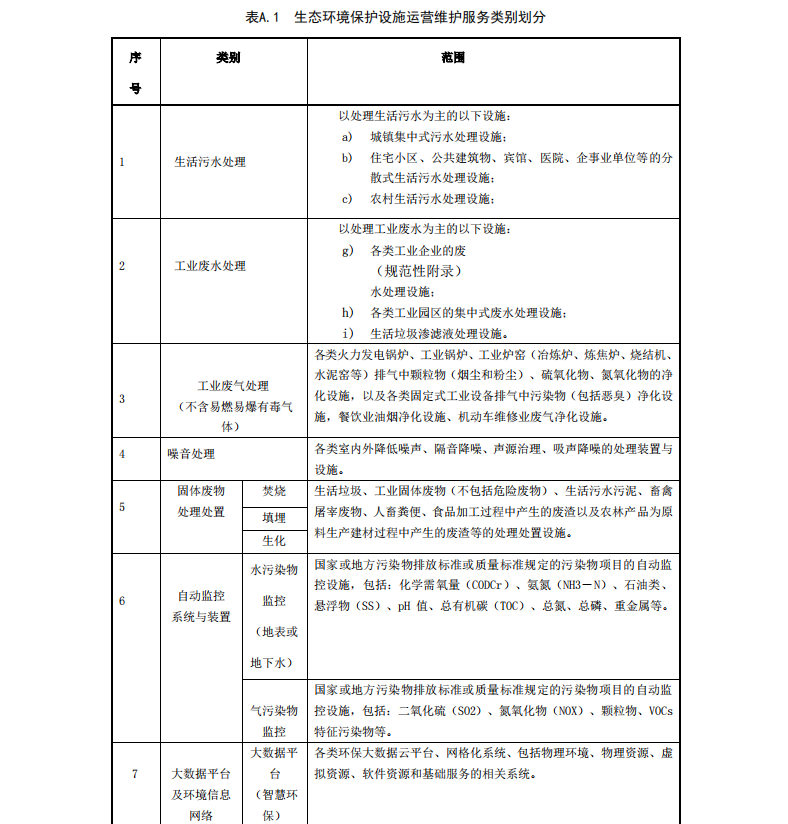 生態(tài)環(huán)境保護(hù)設(shè)施運(yùn)營維護(hù)服務(wù)類別劃分